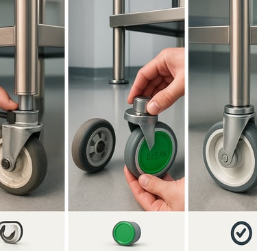 Bottom line: conventional wheels spread microbes and create ESD risk. Upgrading to wheels designed for hygiene and ESD control to protect patients, staff, and uptime.